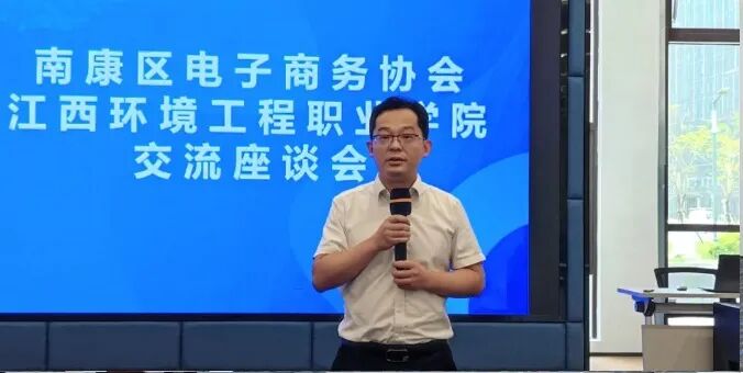 5月8日,江西环境工程职业学院商学院院长范玲俐、教学副院长吴珂带领师生50余人来到南康跨境电商产业园进行交流学习活动,深入探讨校企合作共赢共荣之路。南康区商务局杨峰副局长出席交流会并致辞,电商企业代表在座谈会进行了招聘需求的宣讲。